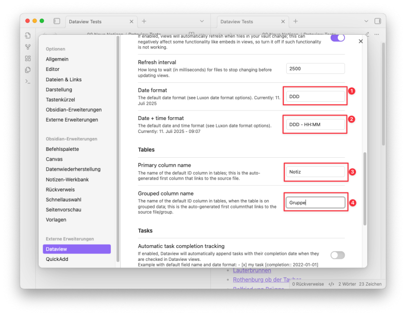 Dass das Zeitformat an dieser Stelle problemlos angepasst werden kann, liegt daran, dass es sich hierbei nur um die Darstellung der Zeit handelt. Intern arbeitet Dataview weiterhin mit dem ISO 8601 Zeitformat, also dem Format yyyy-MM-ddTHH:mm:ssZ.
