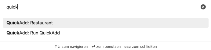 -Suche nun nach deinem QuickAdd-Befehl (z.B. durch Eingabe von „QuickAdd: Neue Notiz“).